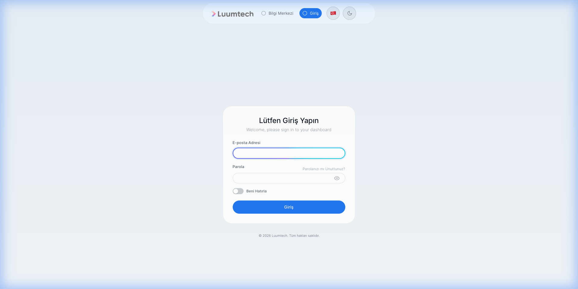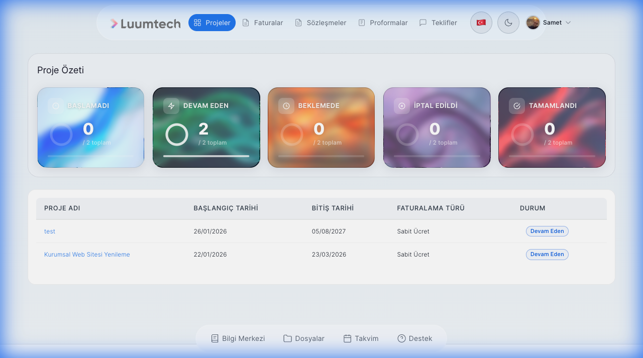 Müşteriler crm.luum.tech adresinden portal'a giriş yapabilir: