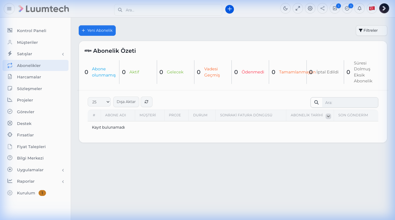 2. CRM'den Abonelikler → Yeni Abonelik bölümüne gidin